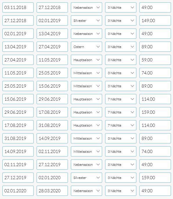 - An- und Abreise in der Hauptsaison nur samstags, ansonsten nach Absprache.